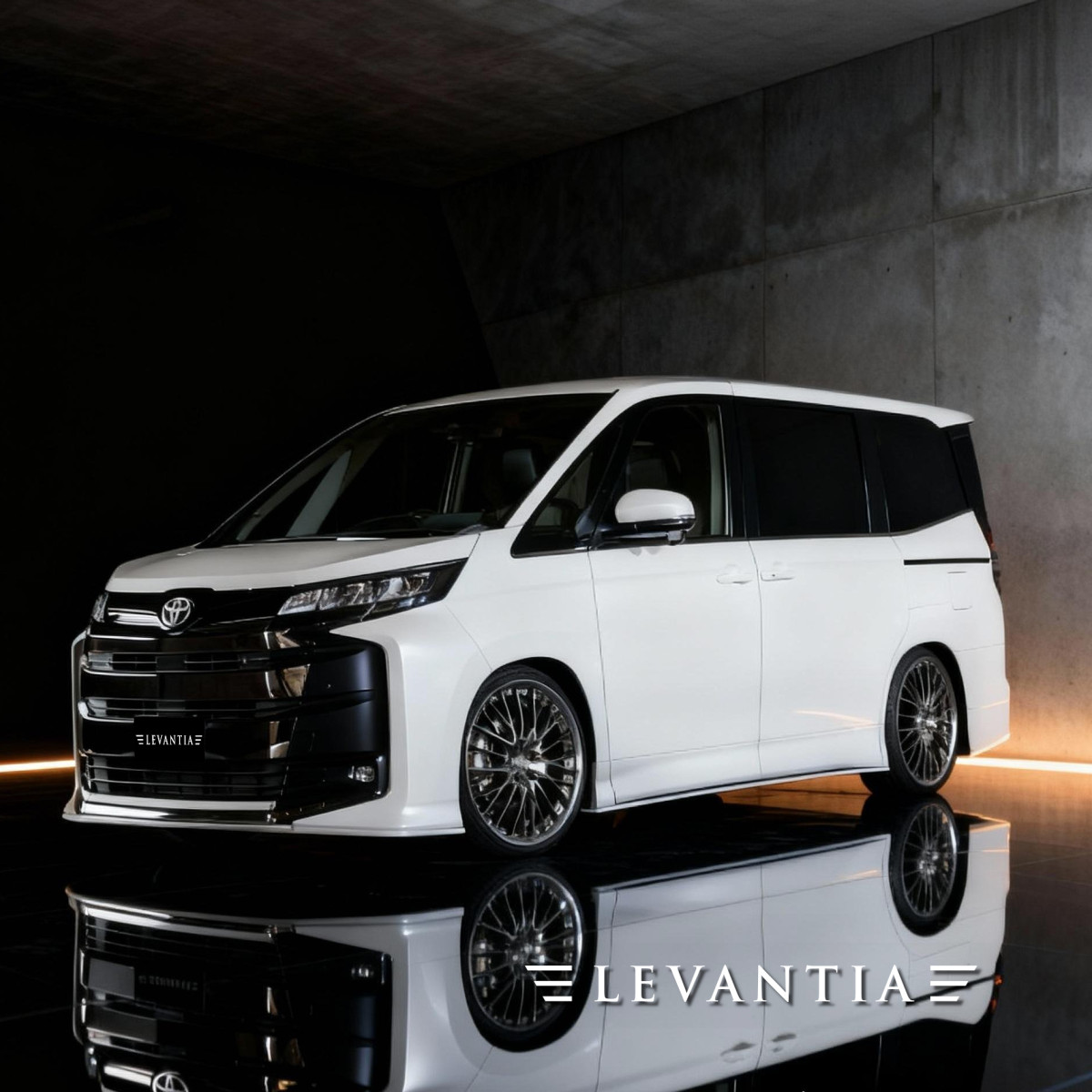 夜明け前、街がまだ眠る時間。エンジンの低い鼓動と、タイヤが路面を噛む気配。その瞬間、90NOAH ノアは移動の器から、あなたの美意識を語る一台へ。大柄なボディだからこそ、線の揃い方と影の質が“格”を決める。LEVANTIAは純正が積み上げた完成度へ敬意を払い、足すのではなく整える。フロントは視線の入口を鋭く、サイドは腰位置を落として伸びを作り、リアは余韻を締める。数ミリの連続性、面の反射、エッジの切れまで追い込み、後付け感のない一体感へ。家族を乗せる日常でも、ふと映るシルエットに誇りが満ちる。派手な承認ではなく、深い納得。選んだ自分が好きになる。停めたあと、思わずもう一度だけ見返す。信号待ちの反射に満たされる——敬意を生む「造形」の証。